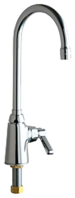 The Chicago 350-E35ABCP Manual and Metering Faucet. This single-supply faucet features a 5-1/4″ rigid/swing gooseneck spout, a 2-3/8″ lever handle, and a 1.5 GPM aerator. It comes with a Quaturn Compression Operating Cartridge, and a 1/2″ NPSM supply inlet with coupling nut for 3/8″ or 1/2″ flexible risers. This model comes in a bright, Chrome finish.