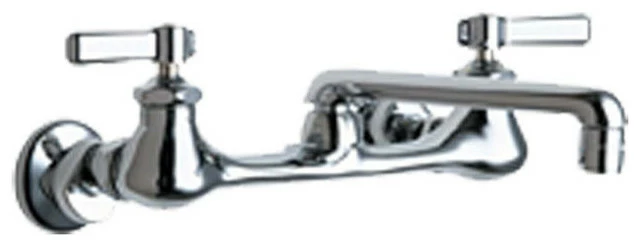 The Chicago 540-LDE35ABCP Manual and Metering Faucet. This hot/cold water sink faucet features 8″ body with adjustable 7-1/4″ to 8-3/4″ arms, a set of 2-3/8″ lever handles, and a 6″ S-Type swing spout. It comes with a 1.5 GPM aerator, a Quaturn compression operating cartridge, and a 3/8″ offset inlet supply arm with 1/2″ NPT female threaded inlet. It also features a 2-5/16″ diameter slip flange, and a bright, Chrome finish.