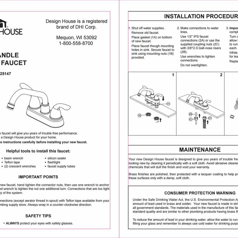 - Covered under Design House’s 5 year limited warranty