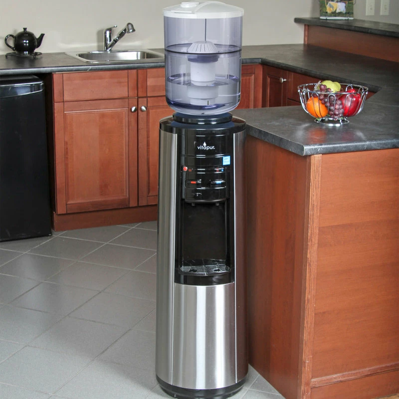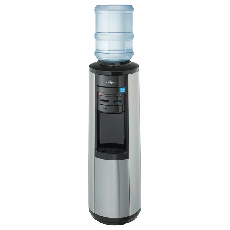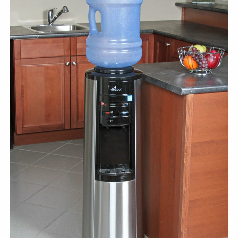 Save energy and money while enjoying great-tasting water with the Vitapur VWD5446BLS Stainless Steel Top-Load Standing Water Dispenser. Stocked with today’s most requested convenience features such as tri-temperature dispensing, an LED night light, and stylish push-button controls, this water dispenser gives you easy access to refreshing water around the clock. It also features a stainless steel cabinet that matches high-end kitchen decor and has a patented kettle feature that uses 70% less energy than traditional water dispensers and gives you hot water in under three minutes. Want to dispense filtered water? This dispenser is also compatible with Greenway & Vitapur water dispenser filtration systems.