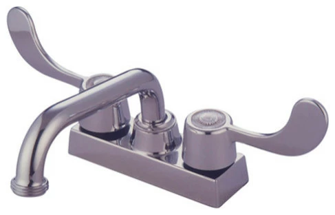 Double Handle 4″ Centerset Laundry Faucet with Metal Wrist Blade Handles from the Vista CollectionKingston Brassβ primary mission is to become the leading provider of cost effective, high quality products in the plumbing community. Their focus has made them grow by leaps and bounds in just a few years by identifying the key problems in manufacturing today and solving them. Kingston Brass produces high quality products ranging from kitchen, bath, and lavatory faucets to accessories such as diverters, towel bars, robe hooks, supply lines, and miscellaneous parts. With the low price, amazing stock times and quality products, you can rest assured that when you order a Kingston Brass product you will love every part of the experience, and it will last for generations to come.Features: