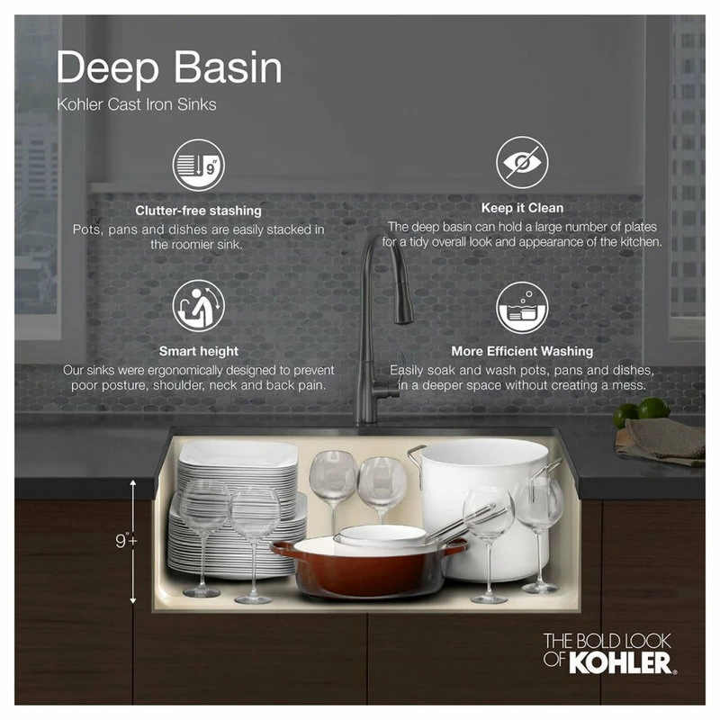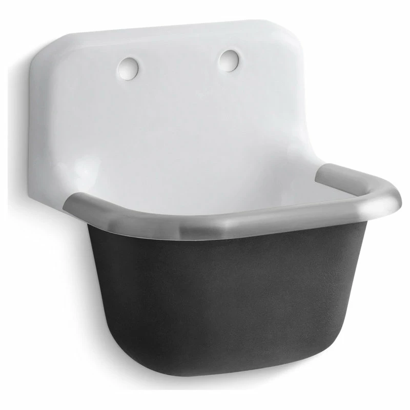 Product Features: Utility sink finished in white; Sink composed of cast iron; Number of faucet holes: 2; Number of basins: 1; This sink is warrantied and manufactured by Kohler; Overall Dimensions: Overall sink length: 18.25″; Overall sink width: 22.25″; Overall sink height: 13″; Basin Dimensions: Interior depth: 12″; Interior length (left to right): 14″; Interior width (front to back): 18″; This item comes as a freight shipment and requires a scheduled delivery setup 24 hours in advance, valid phone number required