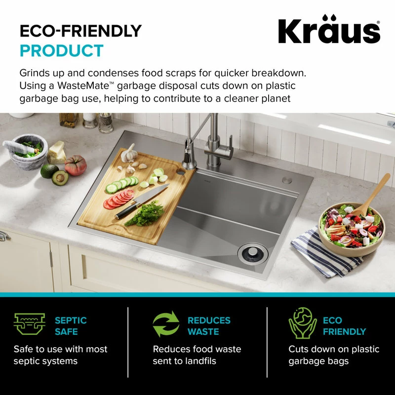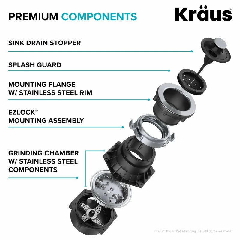 - POWERFUL and RELIABLE PERFORMANCE: KRAUS WasteMate Garbage Disposal for kitchen sinks offers fast and reliable grinding of the toughest food scraps