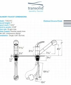 - Spout Reach: 7-5/8″ (faucet base to spout outlet)