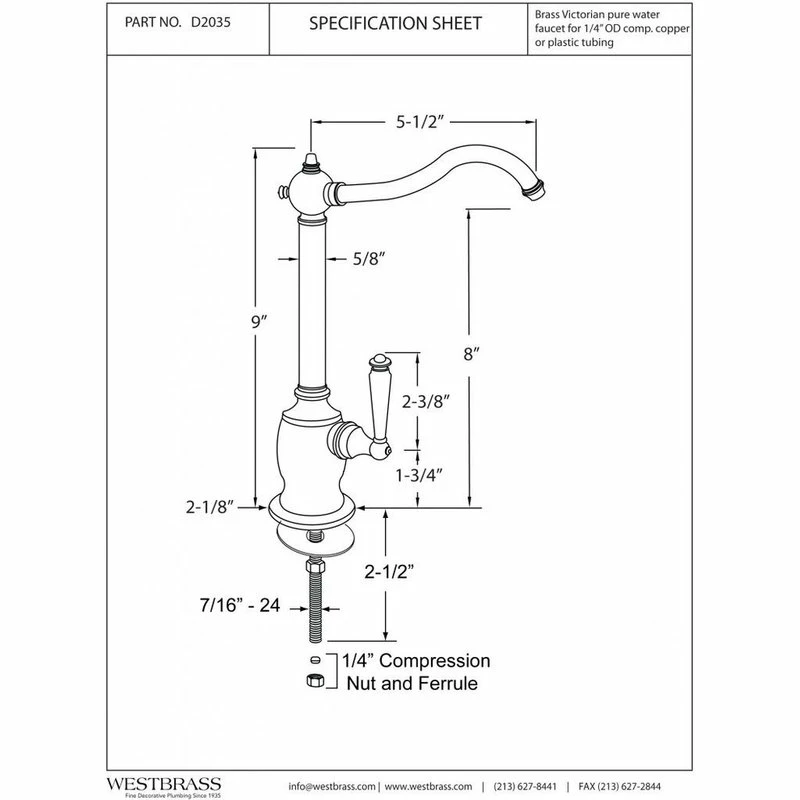 The Westbrass Premium Victorian, 10 in. pure water dispenser with single handle, 1/4-turn ceramic disc, is a stylish and functional addition to any kitchen. Hook up to a water filter, instant water chiller or even directly to your cold tap to provide a simple, easy-to-use water delivery system. Available in a variety of decorative finishes, this item is sure to complement your existing fixtures.