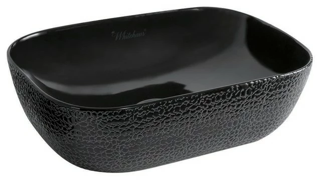 Whitehaus Collection exceeds expectations with the exquisite additions offered in our Isabella Plus Collection. Combining both beauty and durability, these above mount sinks are crafted from the highest quality vitreous china available. The fine craftsmanship shines through with its luxurious, unique and bold seamless design. This WH71302-F04 rectangular above mount sink features an embossed, black exterior and smooth solid black interior, has a center drain and no overflow. Let Whitehaus Collection help redefine your home with a new level of sophistication by enhancing your bathroom dΓ©cor with this elegant Isabella Plus above mount basin.